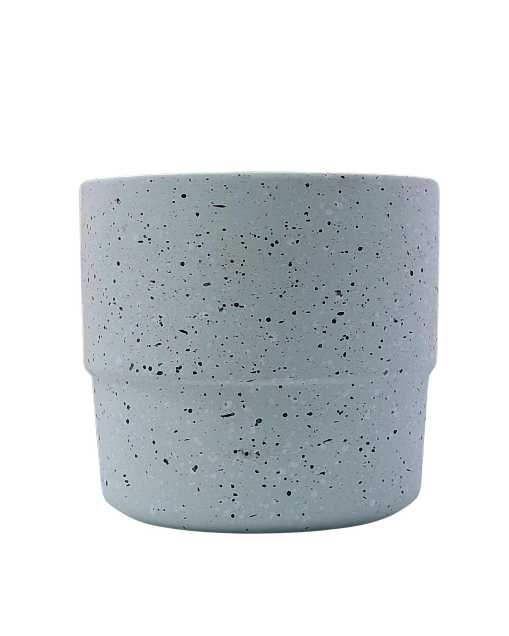 The surface is a warm terracotta tone, adorned with a speckled pattern of black, white, and gray flecks that give it a terrazzo-like appearance. The texture adds depth and visual interest while maintaining a minimalist aesthetic. This stylish piece is perfect for modern interiors, offering a natural yet refined home for succulents, cacti, or small leafy plants.