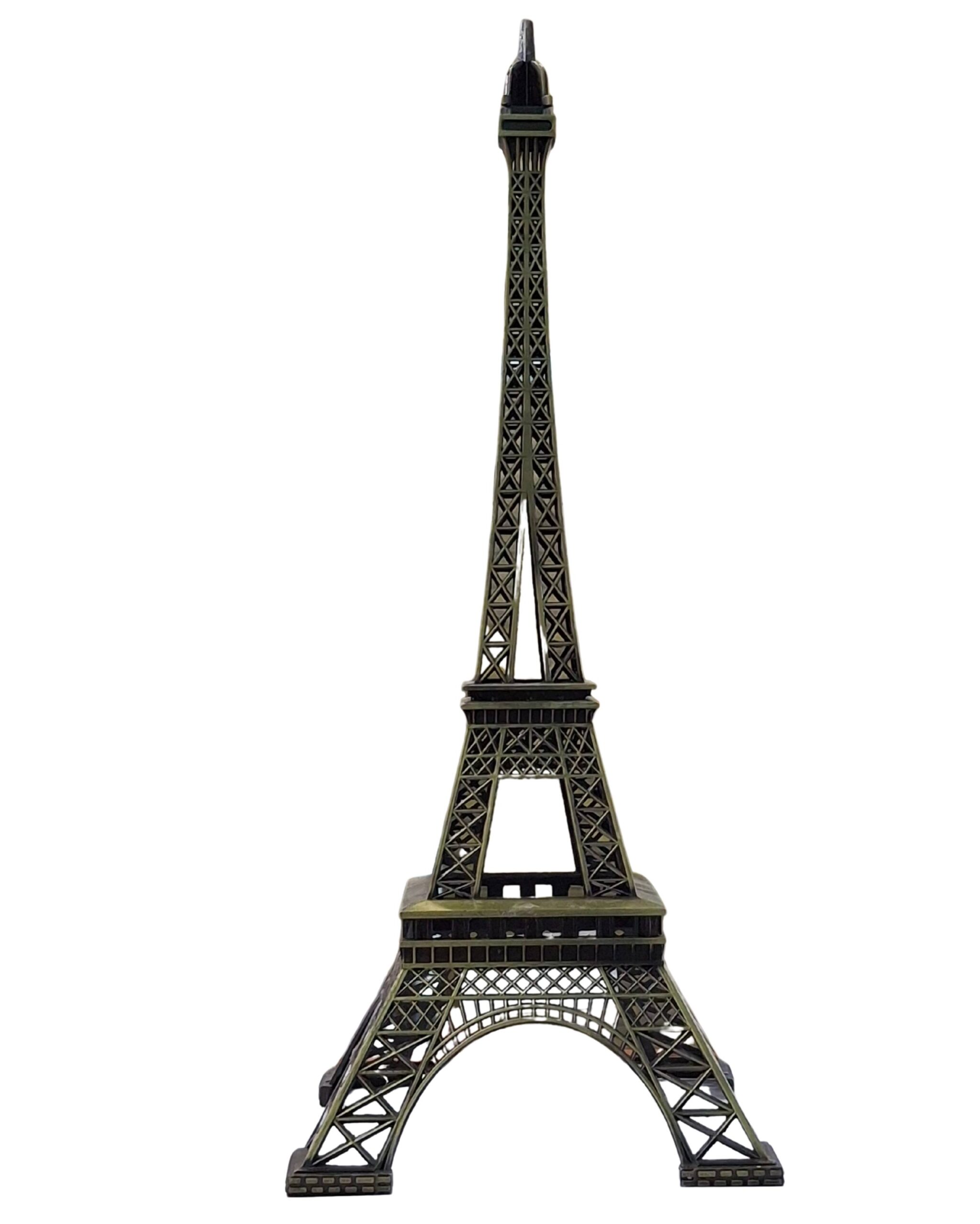 This is a miniature replica of the Eiffel Tower, intricately crafted to capture the architectural detailing of the iconic Parisian landmark. Finished in a dark metallic tone with slight antique accents, it serves as a decorative piece ideal for desks, shelves, or travel-themed decor. The lattice structure is openwork, mimicking the iron framework of the real tower.